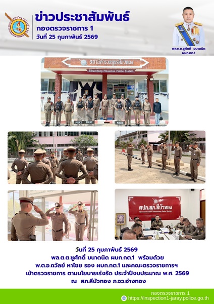 วันที่ 25 ก.พ.69 พล.ต.ต.ชูศักดิ์ ขนาดนิด ผบก.กต.1, พ.ต.อ.ถวัลย์ หาไชย รอง ผบก.กต.1 พร้อมคณะตรวจ