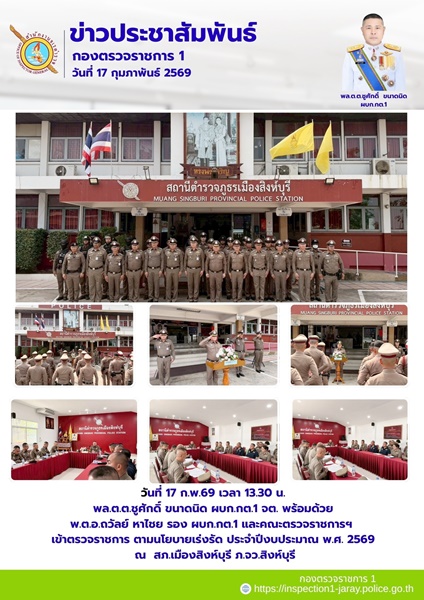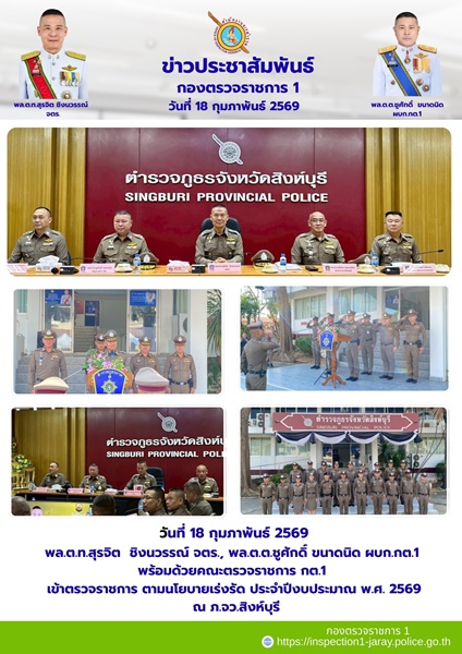 วันที่ 18 ก.พ.69 พล.ต.ท.สุรจิต ชิงนวรรณ์ จตร., พล.ต.ต.ชูศักดิ์ ขนาดนิด ผบก.กต.1 พร้อมคณะตรวจราชก