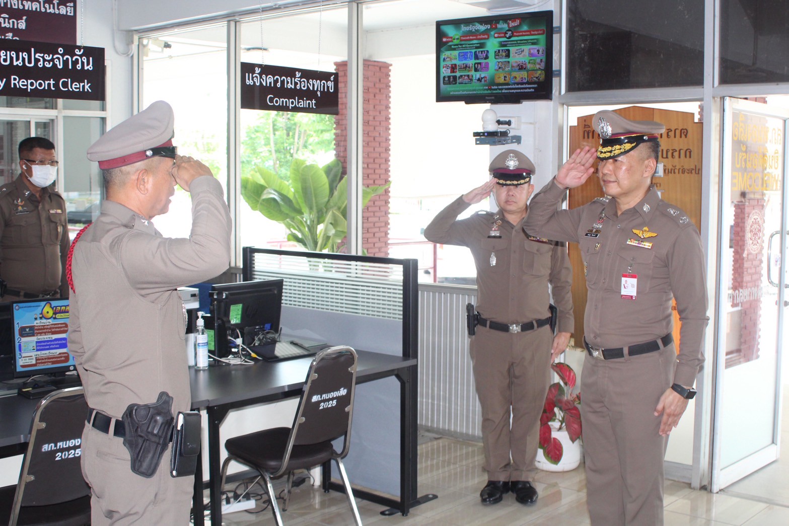 วันที่ 20 พ.ค 68 เวลา 13.00 น. พล.ต.ต.สราวุธ จินดาคำ รอง ผบก.กต.1 จต. และ พ.ต.อ.ชัชวาลย์ ทิพย์พิชัย รอง ผบก.กต.1 จต. พร้อมคณะตรวจราชการฯ เข้าตรวจเยี่ยมและสุ่มตรวจการปฏิบัติหน้าที่ข้าราชการตำรวจ สภ.หนองเสือ ภ.จว.ปทุมธานี ตามนโยบายการบริหารราชการของ ตร. ประจำปีงบประมาณ พ.ศ.2568