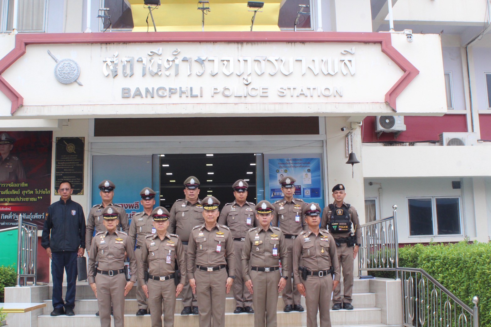 วันที่ 22 พ.ค 68 เวลา 11.30 น. พล.ต.ต.สราวุธ จินดาคำ รอง ผบก.กต.1 จต. และพ.ต.อ.ชัชวาลย์ ทิพย์พิชัย รอง ผบก.กต.1 จต. พร้อมคณะตรวจราชการฯ เข้าตรวจเยี่ยมและสุ่มตรวจการปฏิบัติหน้าที่ข้าราชการตำรวจ สภ.บางพลี ภ.จว.สมุทรปราการ ตามนโยบายการบริหารราชการของ ตร. ประจำปีงบประมาณ พ.ศ.2568