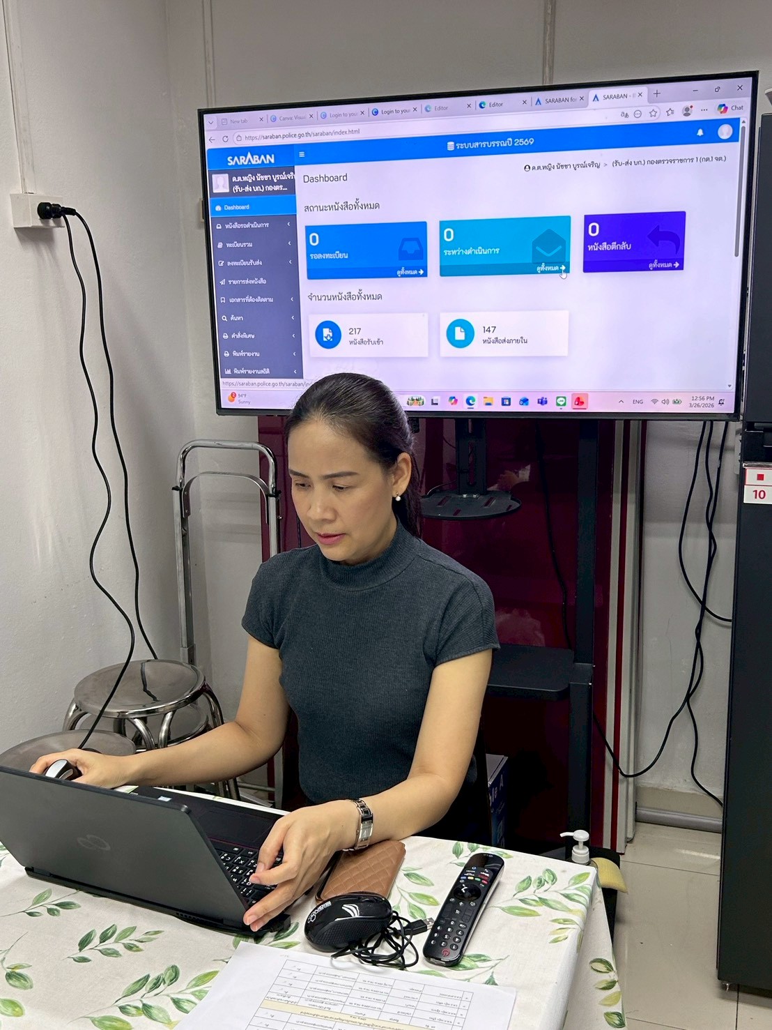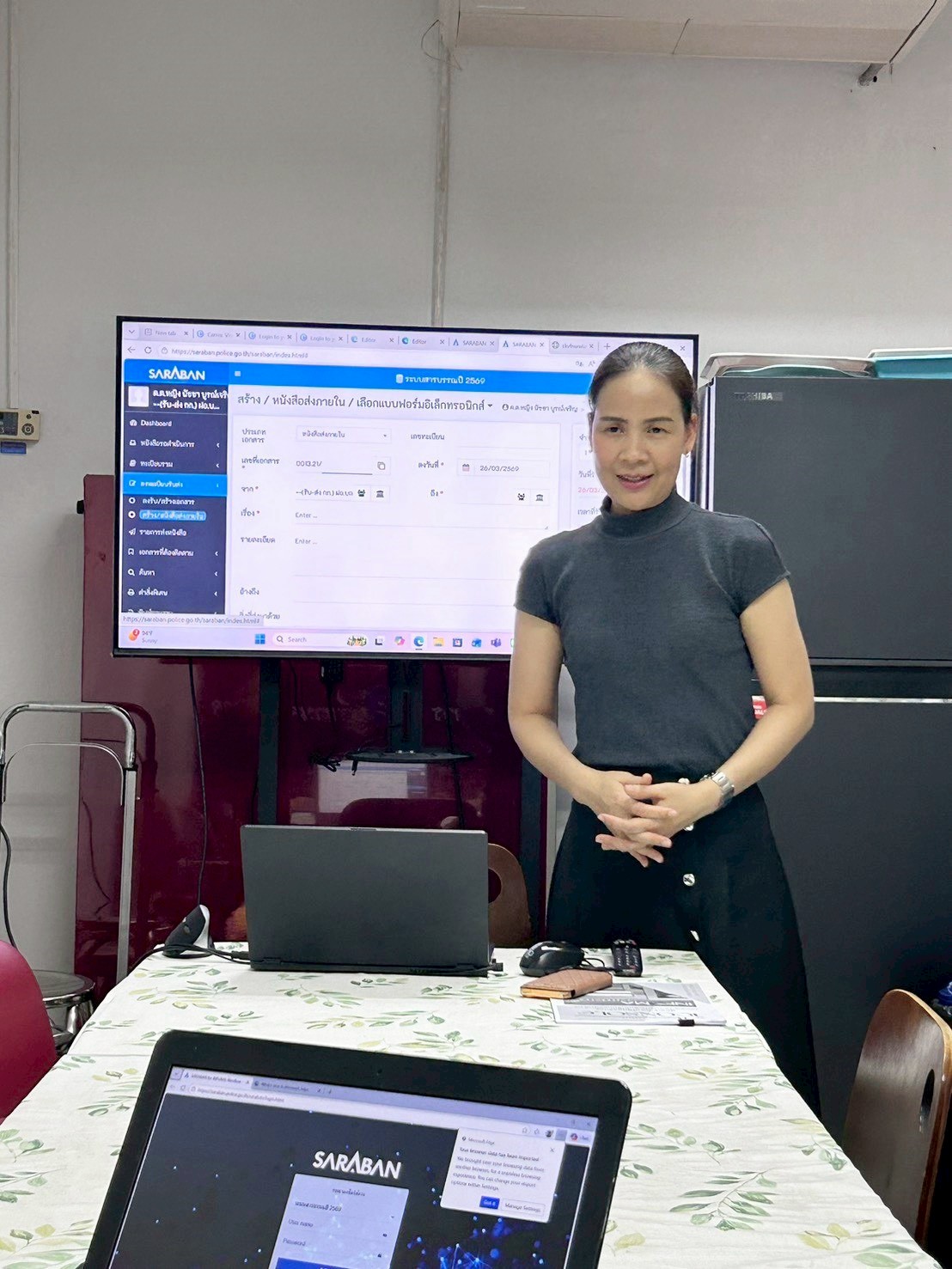 วันที่ 26 มี.ค.69 เวลา 13.00 น. ฝอ.กต.1 ได้ดำเนินการจัดการซักซ้อมการปฏิบัติในการใช้งานระบบสารบรรณอิเล็กทรอนิกส์ ตร. ในหน่วยงานระดับ กก. ลงไป ให้แก่เจ้าหน้าที่ของ ฝสต.1 และ ฝสต. 2 กต.1 พร้อมทั้งฝึกปฏิบัติในการใช้งานระบบฯ ทั้งนี้ สลก.ตร. กำหนดการใช้ระบบฯ ดังกล่าว ในการรับ-ส่ง และจัดเก็บเอกสารพร้อมกันทั่วประเทศ ในวันศุกร์ที่ 1 พ.ค.69 เป็นต้นไป