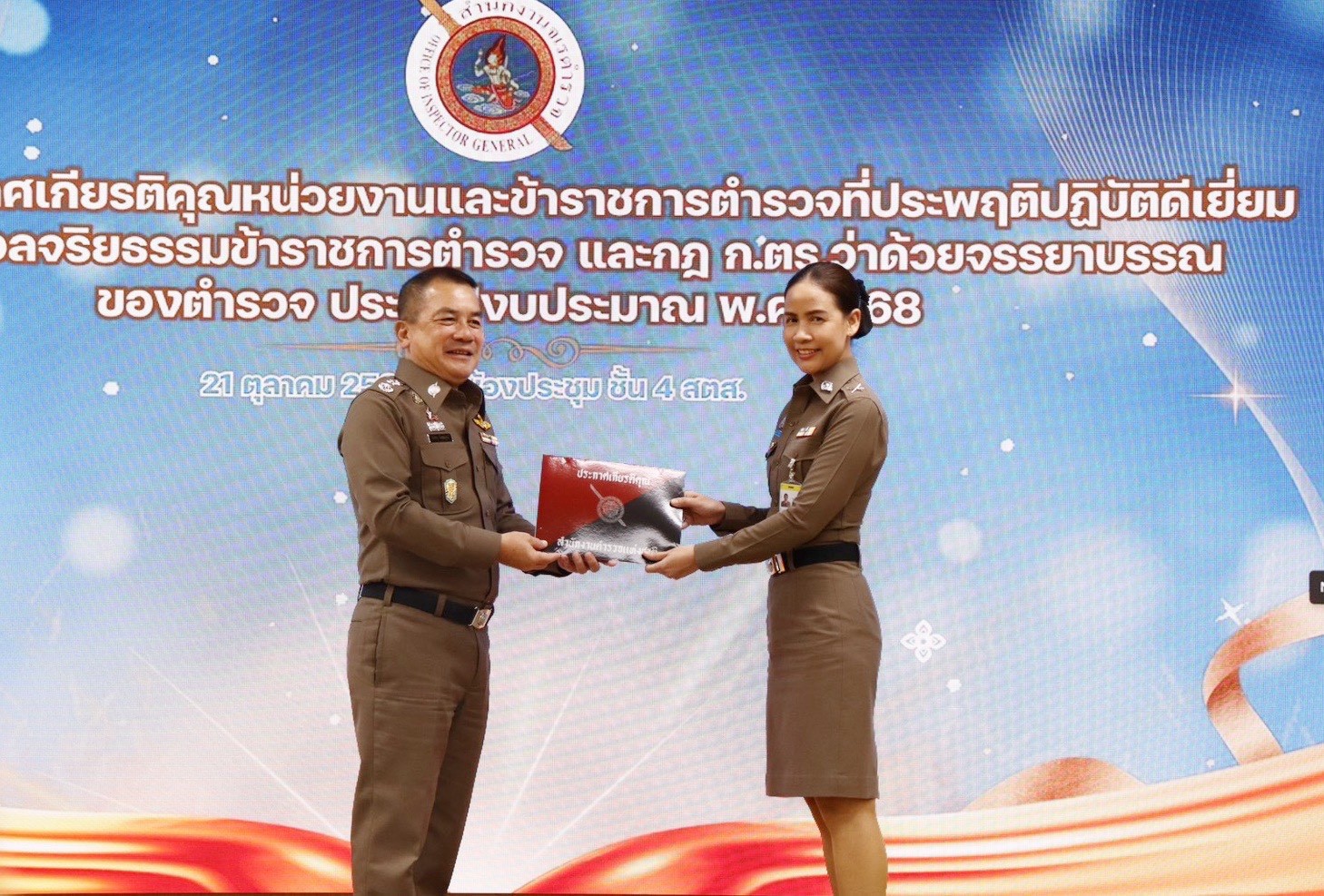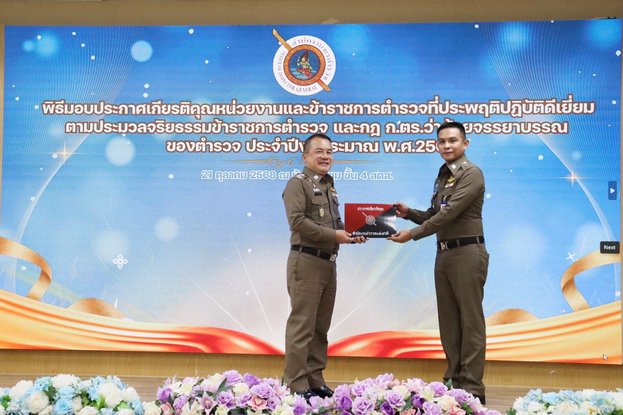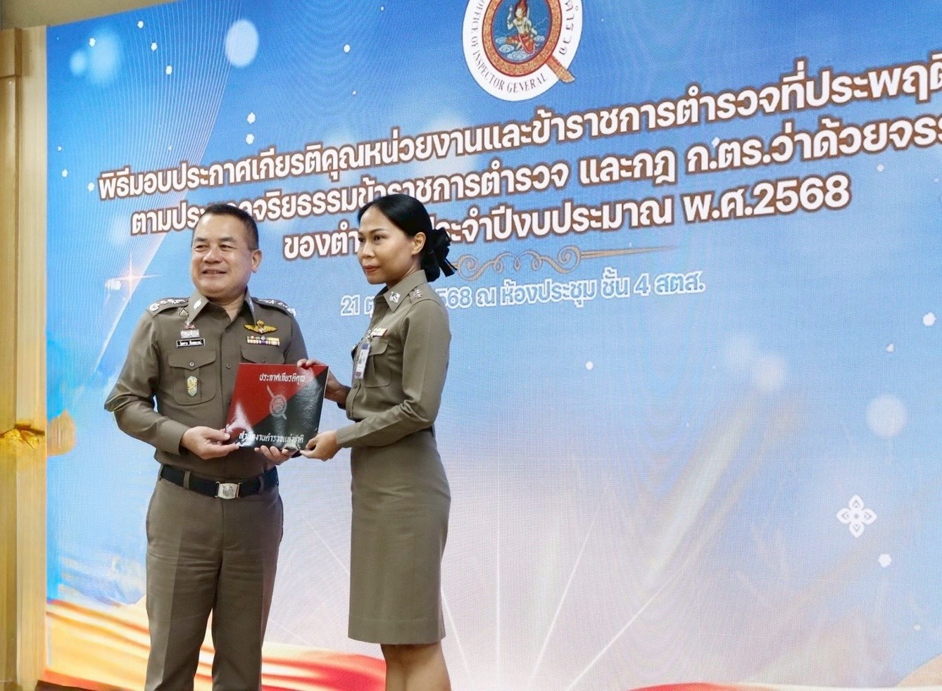 พิธีมอบใบประกาศเกียรติคุณหน่วยงานและข้าราชการตำรวจที่ประพฤติปฏิบัติดีเยี่ยม ตามประมวลจริยธรรมข้าราชการตำรวจ ละ กฎ ก.ตร. ว่าด้วยจรรยาบรรณของตำรวจ ประจำปี พ.ศ.2568