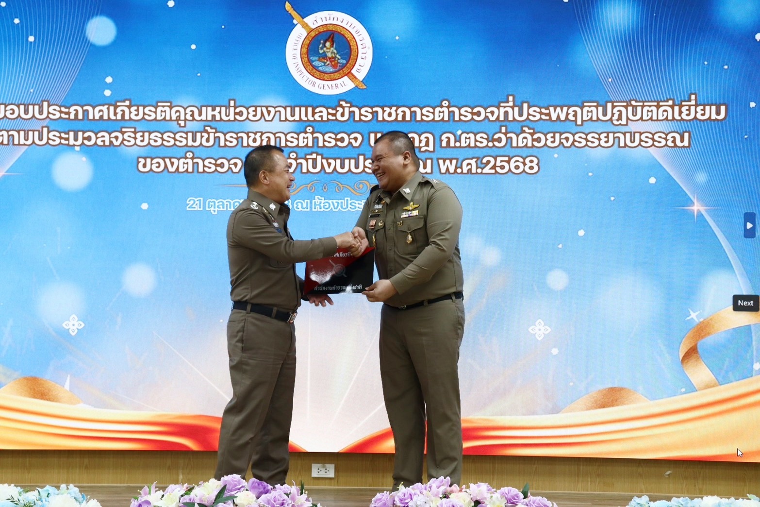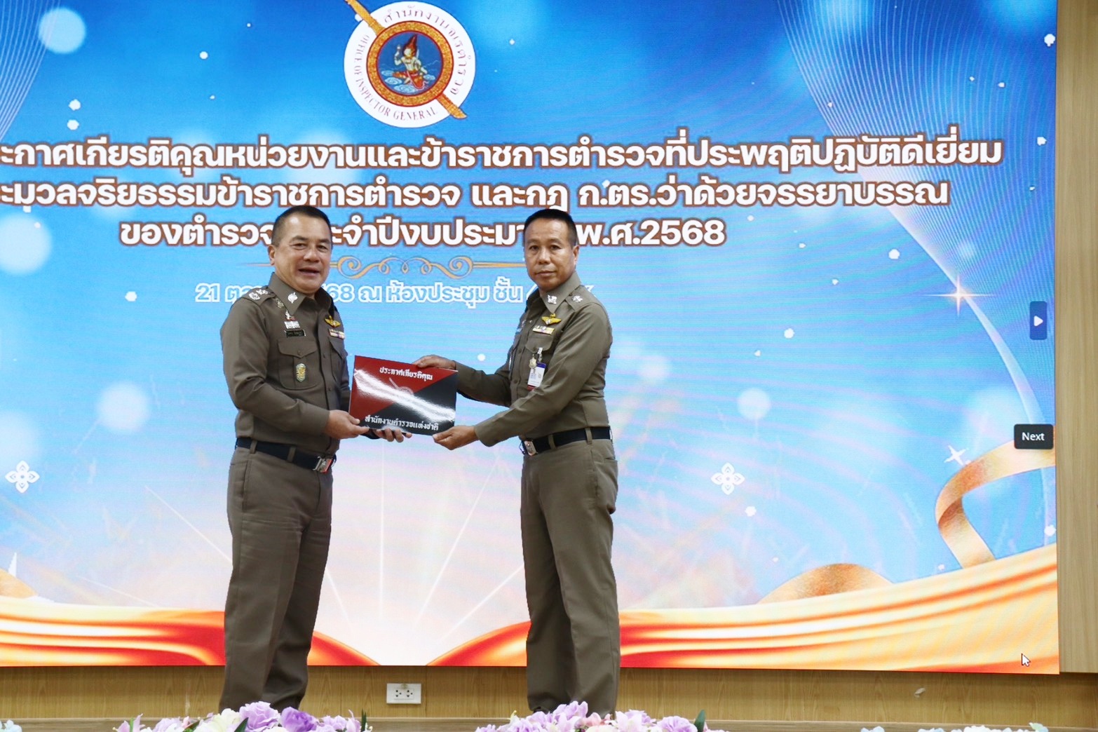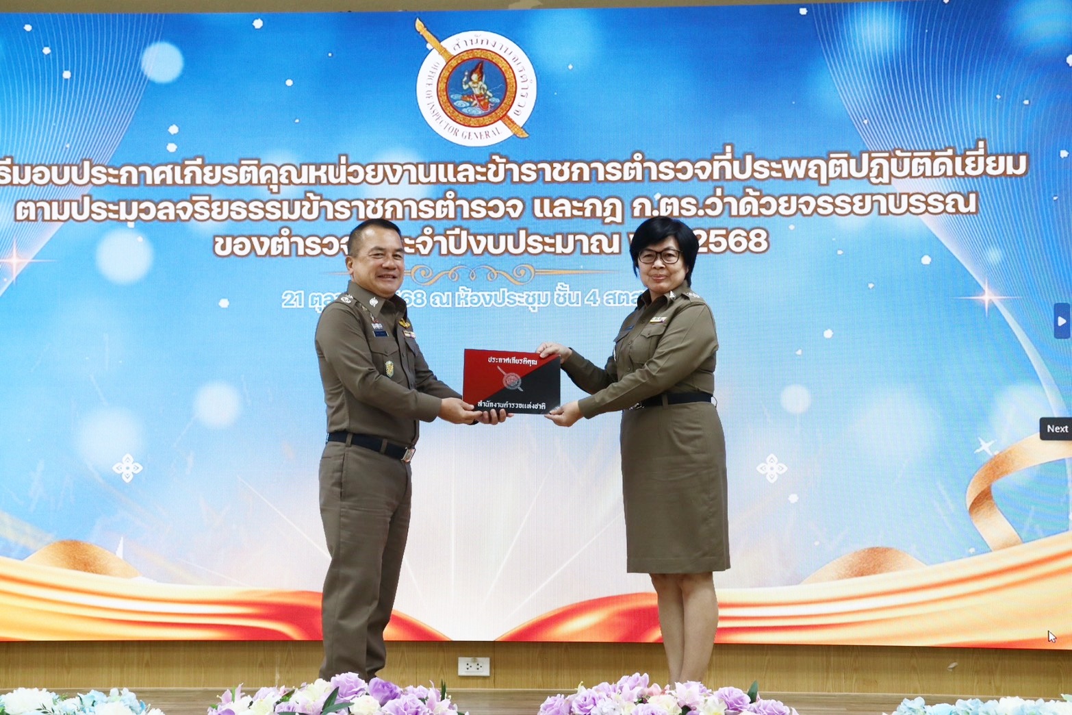 พิธีมอบใบประกาศเกียรติคุณหน่วยงานและข้าราชการตำรวจที่ประพฤติปฏิบัติดีเยี่ยม ตามประมวลจริยธรรมข้าราชการตำรวจ ละ กฎ ก.ตร. ว่าด้วยจรรยาบรรณของตำรวจ ประจำปี พ.ศ.2568